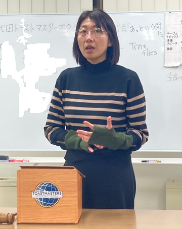 その論評者に対してのコメントや例会全体の評をするのが総合論評のお役目。年明け早々に予定されているテーブルトピックスコンテストの審査基準を意識した適時なコメントが印象的でした。