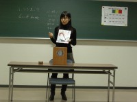 最初は、大学生のI嵐さんの日本語スピーチ。タイトルは「昭和モダン」。流行を追いかけがちな世代でありながら、1930年代の古きよきものに価値を見出し、その素晴らしさをシェアしてくれました。彼女のお気に入りは特に“火鉢(ひばち)”だとか。エアコンが当たり前の現代に・・・渋っ(笑)。格安で譲ってくださる方を募集中だそうなので、もし情報をお持ちの方はご一報くださいませ~。