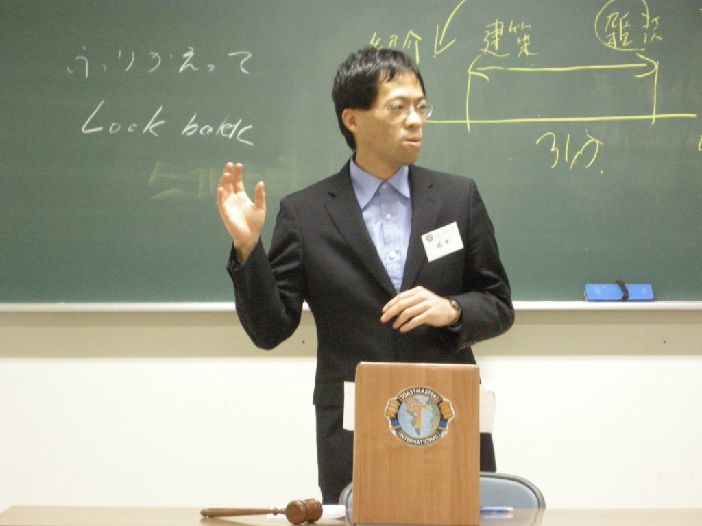 まずは、テーブルトピックス。これはテーブルトピックマスター(TTM)が出すお題にもとづいて、TTMに指名された人が即興で一定の時間内にスピーチ(コメント)するセッションです。