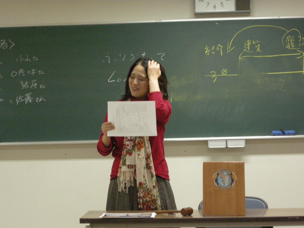 続いて、K林さんのコントロールのもと、論評のセッション。I嵐さんのスピーチへの論評は、I上さん、S山さんのスピーチへの論評はK木さんにしてもらいました。I上さんの論評する視点は、とても新鮮で「なるほど!」と思わず手を打ちました!