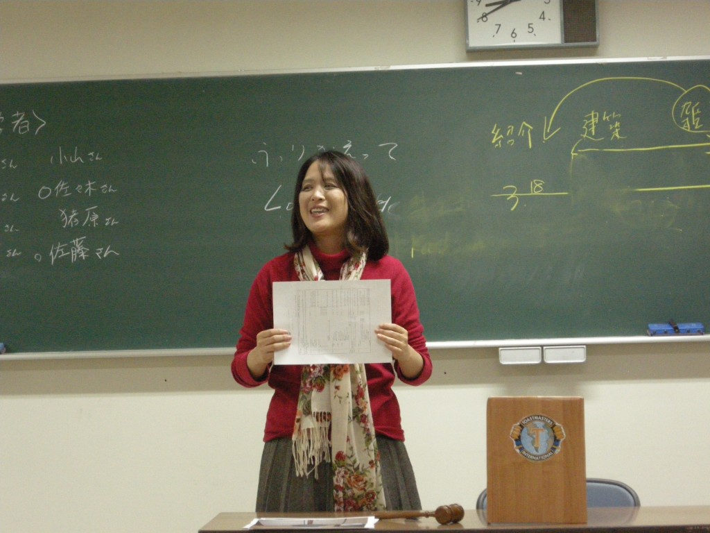 続いて、準備スピーチのセッション。今回は、日本語スピーチ2名、英語スピーチ1名を予定しておりましたが、急遽欠席があったため、日本語・英語1本ずつのスピーチとなりました。