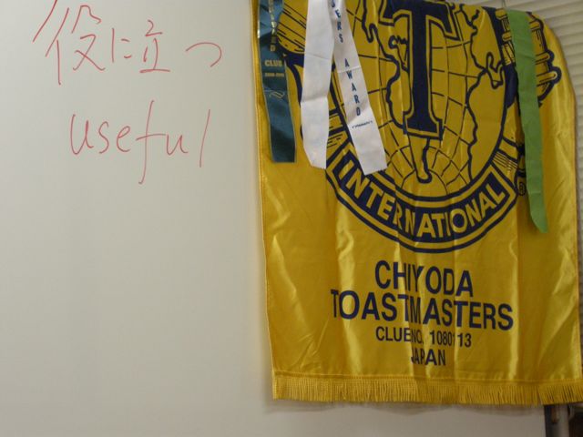 今夜のTMOEはK木さんで、今夜の言葉は「役に立つ」。千代田TMCでは9月15日に日本語論評、10月6日が英語論評インクラブコンテストのため今日は論評ワークショップが中心となっています。