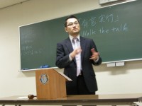 今日のTMOEはH岡さんです。東京マラソンの抽選に当選したというH岡さん、3時間を切るタイムを出しますと宣言し、今夜の言葉(キーワード)は、「有言実行」(walk the talk)に決まりです。