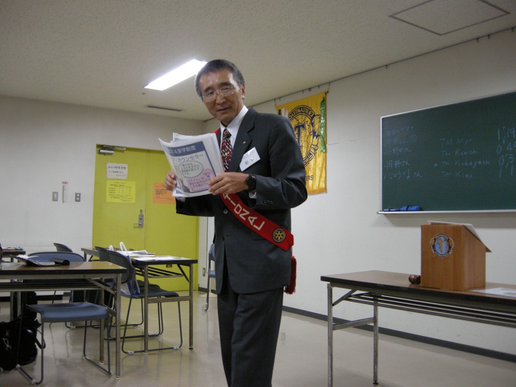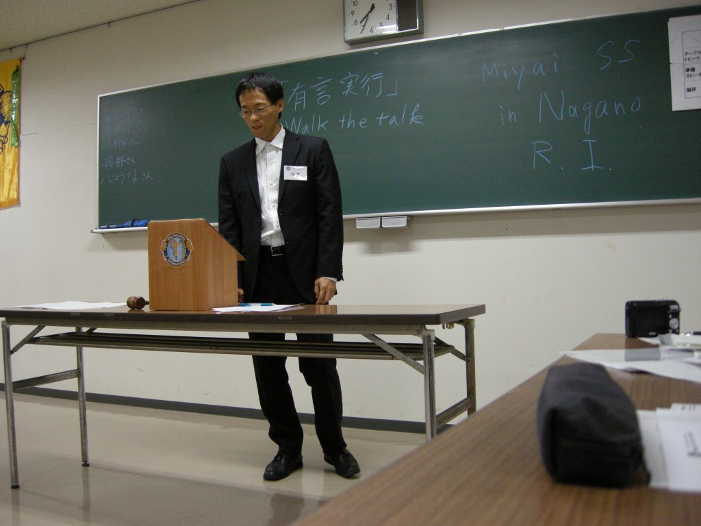 続いて、今日の準備スピーチの一人目はS山さん。タイトルは「Yoneyama Project」。ご自身が在籍されているロータリークラブ、支援団体の紹介から始まりました。留学生を支援する団体の存在はとても貴重であり、これからも彼らを支援し続けるためにも、こうした活動にぜひ関心を持って欲しい、と話を締め括られました。なお、このスピーチには「Q&Aコーナー」付いています。S山さんは、入会のきっかけは?といった質問や、運営状況に関する質問などに手際よく答えていました。