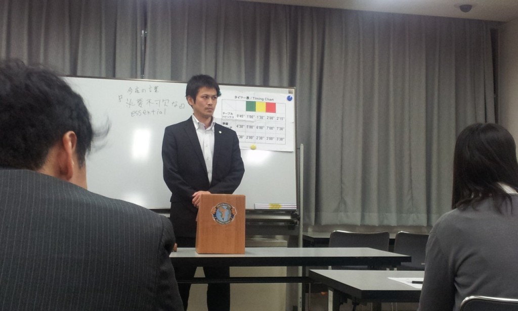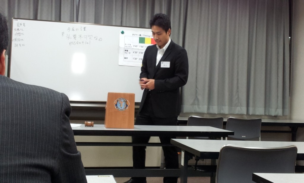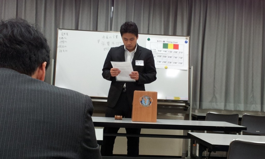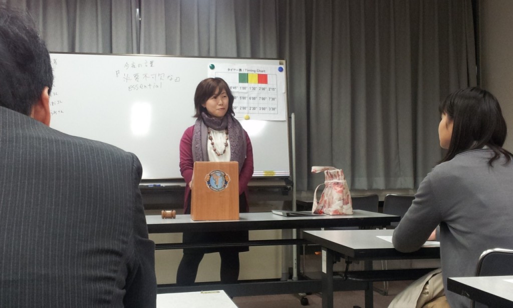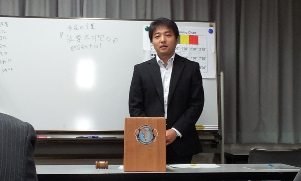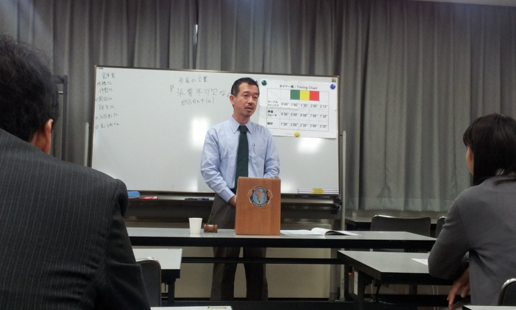 本日のテーブルトピックス(即興スピーチ)マスターはI井さんでした。普段のお仕事を活かした「もしあなたが会社の社長になったら」というお題で、どんなビジネスを立ち上げたいか、どんな人を採用したいか、離職者をどうやって引き止めるか、セカンドライフをどう過ごしたいかと、I井さんらしい質問をされました。難しいお題でしたが皆さんユーモアを織り交ぜ楽しく即興スピーチされていました。