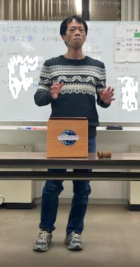 いつもの例会が始まりました、今夜は何と見学申込のあったゲスト4名のうち2名現場参加1名オンライン参加、インド赴任中で欠席がちなメンバーも参加してくれました。