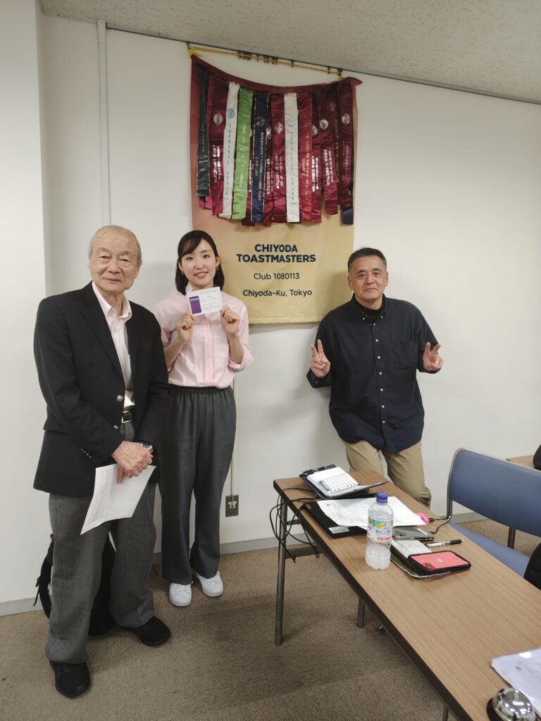 あらかじめお題を用意してきておりその中から選んでスピーチを2つしてもらいました。